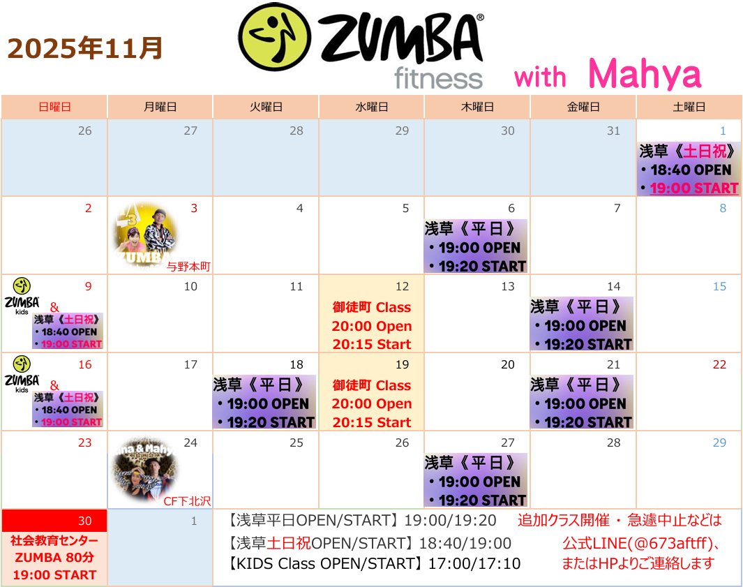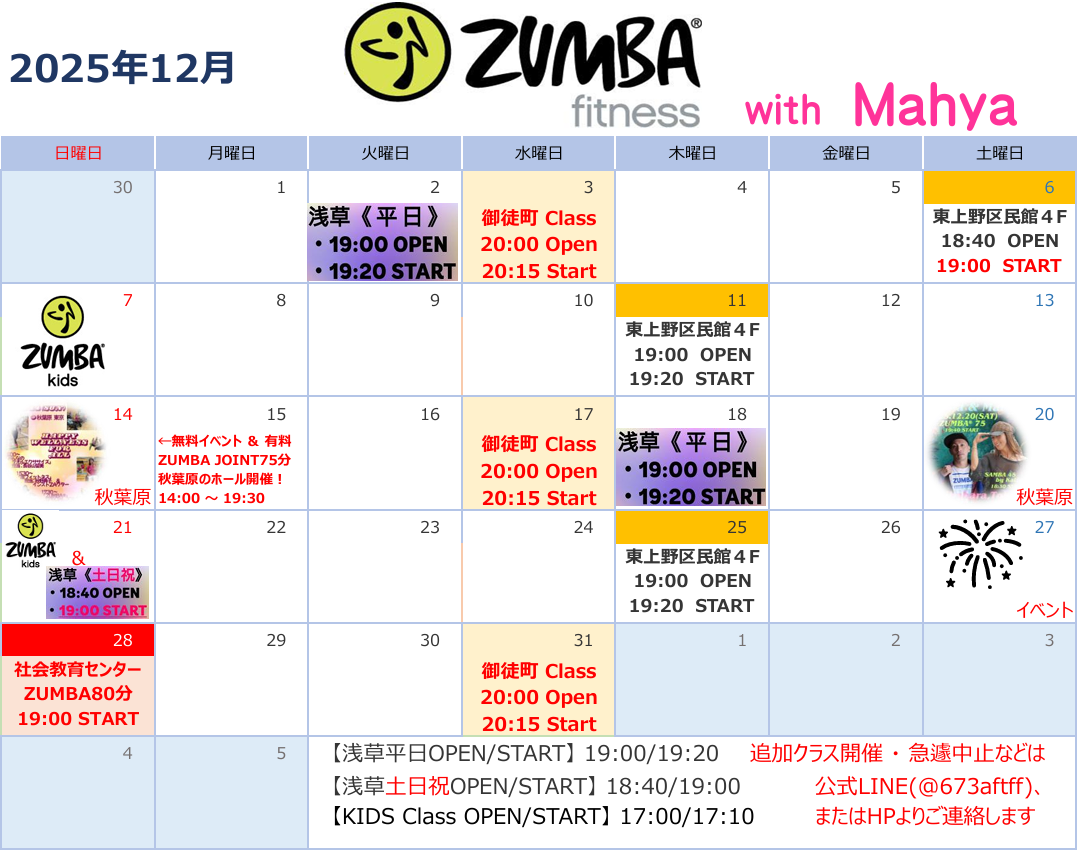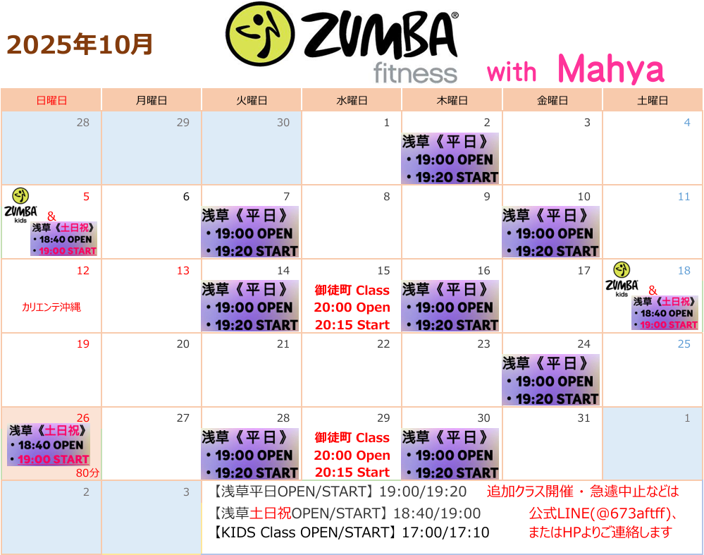 ・公式LINE @673aftff 「ZUMBA Mahya in 東京」