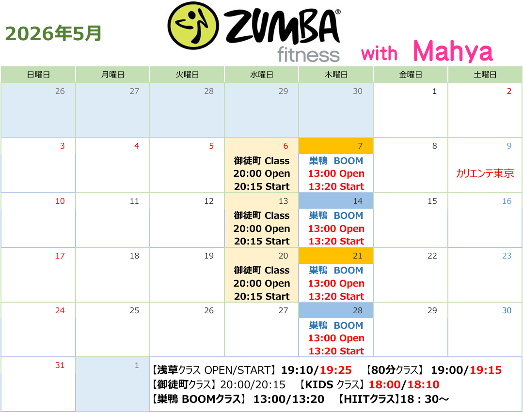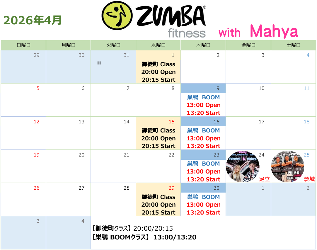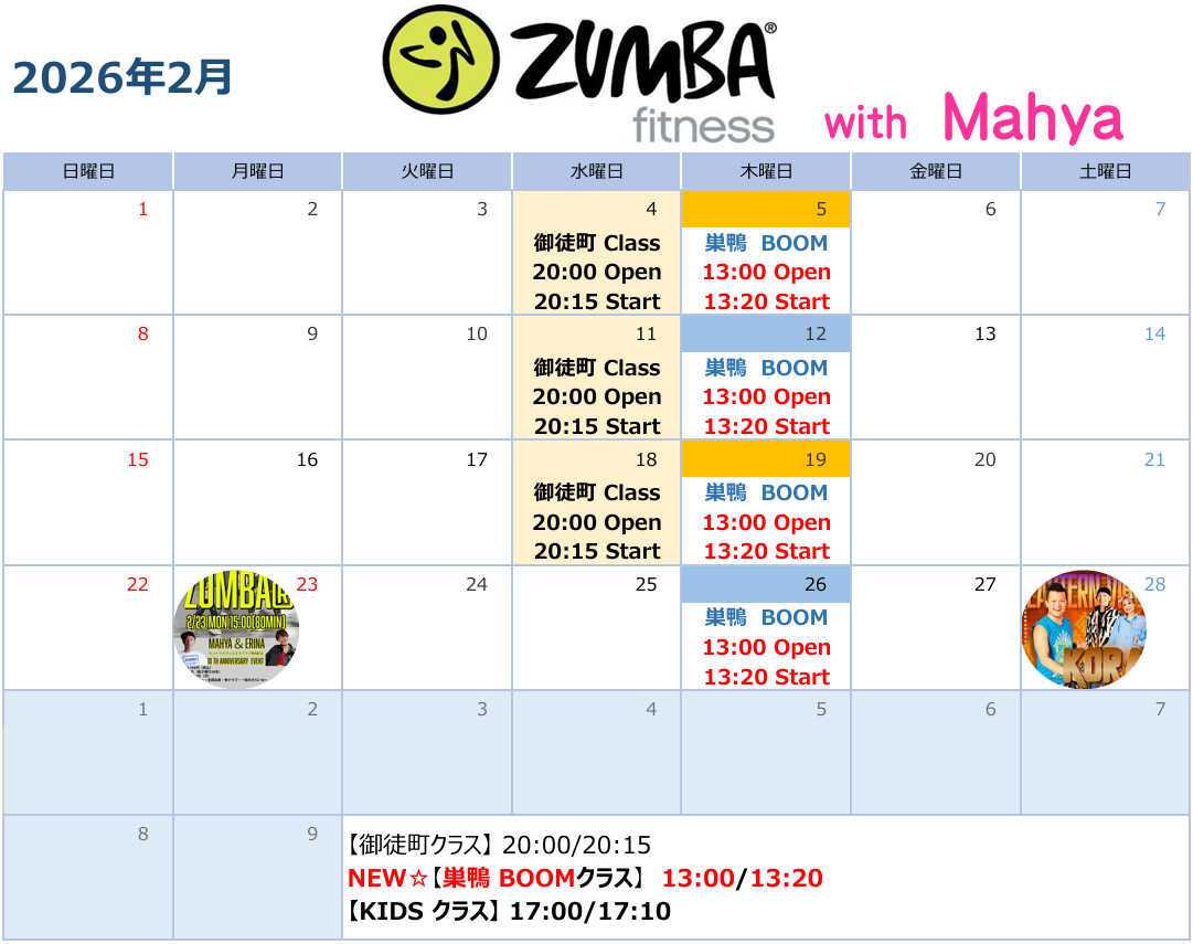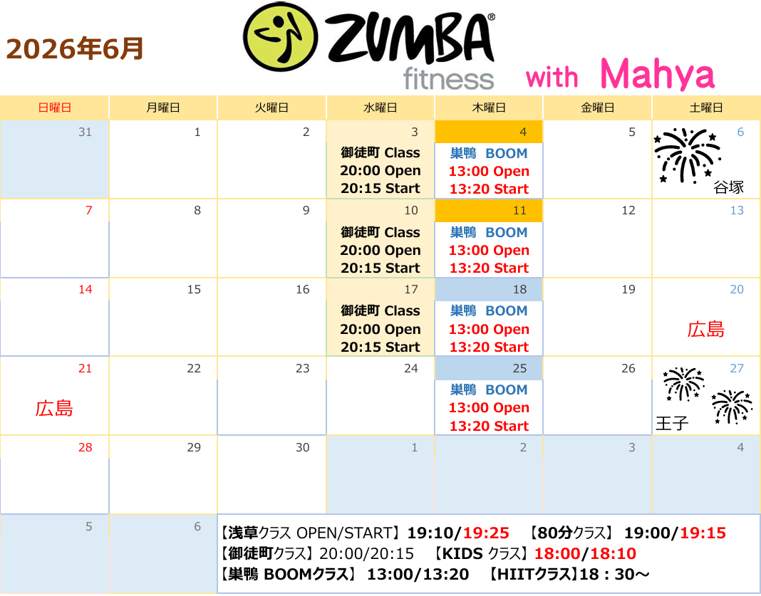 ※追加クラス開催や変更がありましたら、公式LINE等にて随時更新いたします。